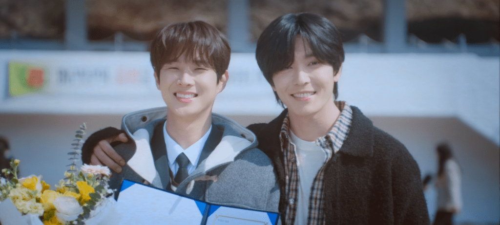 D’abord, la relation entre les deux frères. Ko Jun se met au service de son petit frère et finalement vit par procuration à travers lui. Mais il ne ressent ni frustration, ni jalousie. Au contraire. Il se nourrit de la joie de vivre de son frère. Au fur et à mesure du drama, on découvre par petites touches des aspects de sa personnalité. Ce personnage est si discret, si délicat, que l’on est sincèrement touché par son mal-être. Car oui, Ko Jun promène un mal-être en lui qui l’a poussé, peut-être, à vouloir se suicider. Mais de ça, il n’en parlera pas. Et Ko Gyeom, le saura-t-il ?