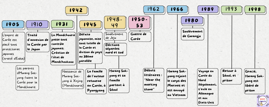 Né en 1943, la vie de Hwang Sok-yong est impactée par les différents événements politiques et militaires de son époque. Et comme bon nombre de personnes, il a été balloté au gré des conflits.