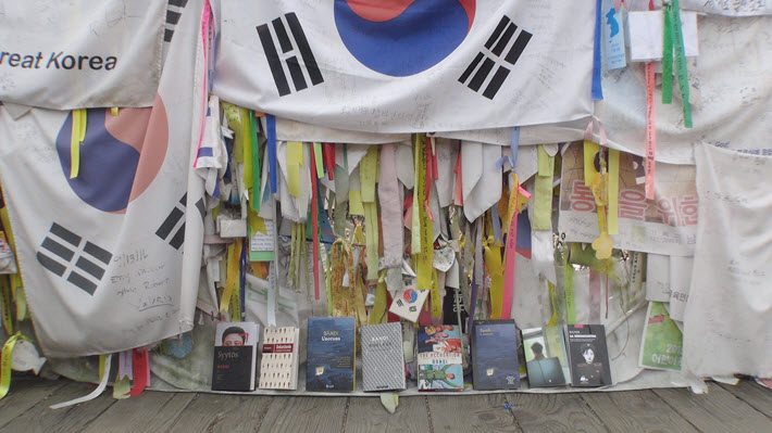 Derrière les livres disposés sur le pont, des rubans flottent au vent, portant des messages de Sud-Coréens à leurs parents Nord-coréens perdus depuis longtemps. Puissent ces messages traverser la frontière, comme le manuscrit de Bandi. Car même si ses textes sont dénués de la moindre étincelle d’espoir, le seul fait qu’il ait souhaité et réussi à les faire passer au-travers des fils barbelés de Pyongyang prouve que, si l’auteur est sans espoir, l’homme lui, l’est toujours.